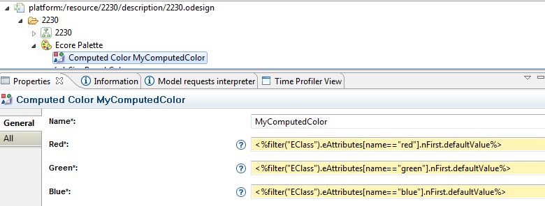It is possible to define a new color type with computed RGB. Each color component can be defined by an expression (Acceleo, OCL, or another specific interpreter). This evolution is needed for a specific diagram in which the color of the element depends on the semantic model.