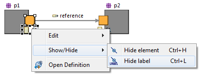The approach is the same as for other elements, except that there is a specific menu named «Hide/Show Label». It is possible to call this menu directly on the node or on its label.