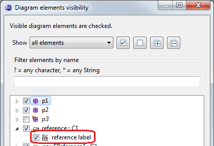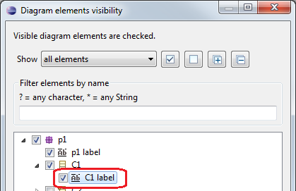 - from the «Diagram elements visibility» wizard