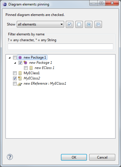 This open a dialog that display the diagram elements as a tree. This way the user can choose shown and hidden elements more easily.