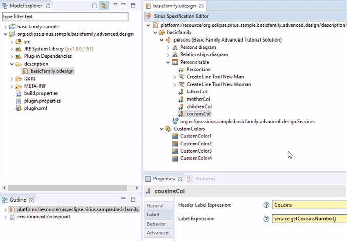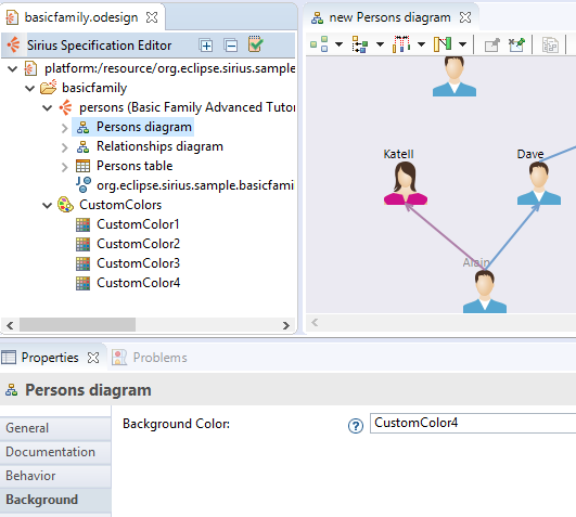 Now the basic colors (blue, light_blue, dark_blue, …) proposed in the Sirius editor to customize your graphical elements (nodes, containers, borders, edges and labels) are also available for the end-users in the Appearance tab of the Properties view.