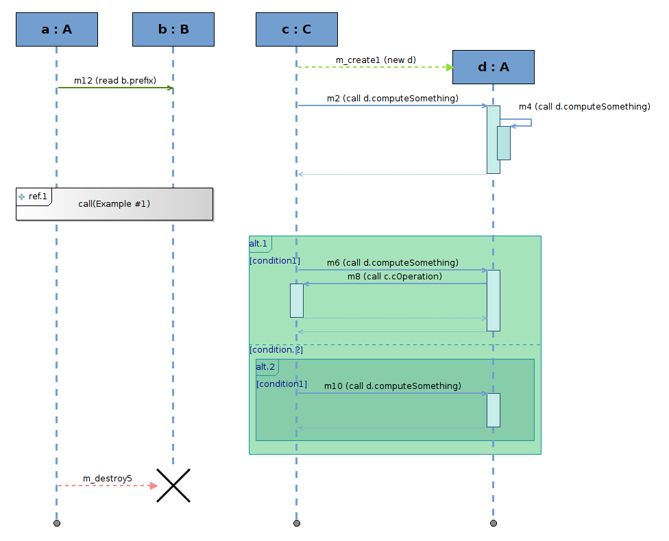 Complex sequence diagrams can be created, thanks to the management of combined fragments.