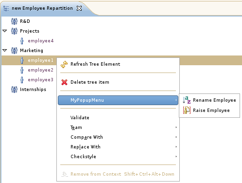 Popup can be added to allow the user to perform specific actions on model elements.
