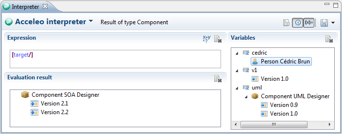 This perspective also provides the Interpreter view which allows the architect to evaluate expressions (see Acceleo 3 interpreter)