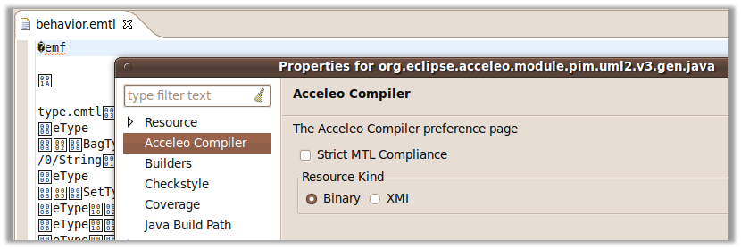 - Acceleo modules can now be compiled into binary resources.