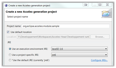 When creating a new Acceleo project, you can now choose the JRE of your choice.