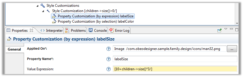Here is the result of this customization: the size and the color have changed only on persons with children.