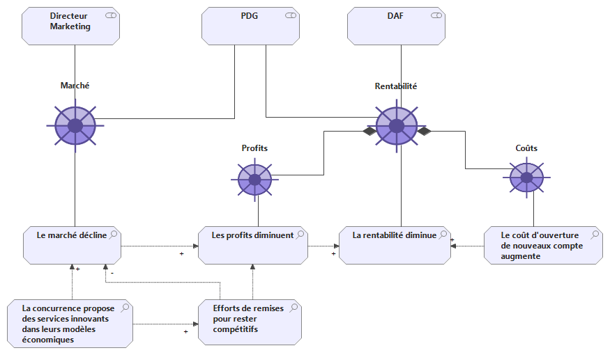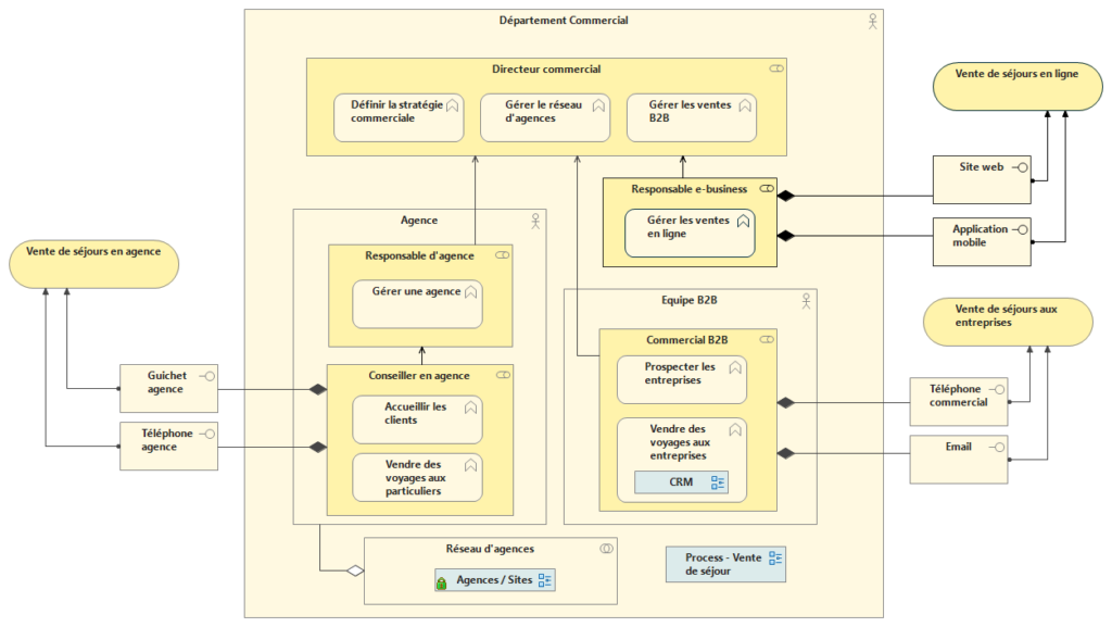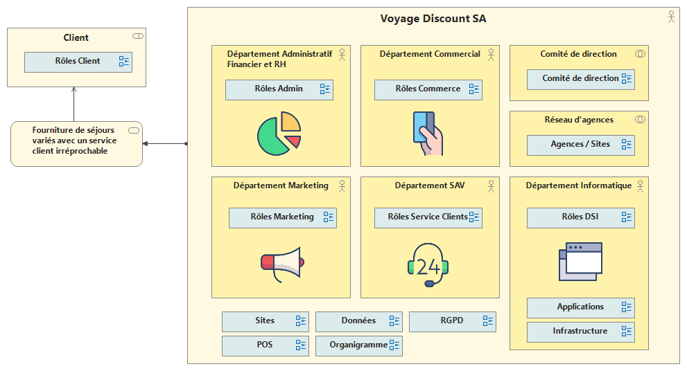 Ces quelques exemples illustrent comment différents points de vue sur une même organisation peuvent être modélisés avec Obeo SmartEA.