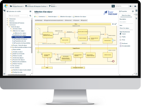 Obeo SmartEA® est une solution multi-utilisateurs et accessible depuis un navigateur web, permettant de modéliser les processus métiers d’une entreprise.